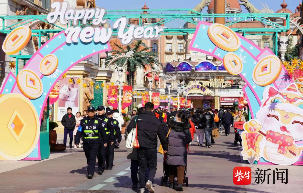 在中华恐龙园、天目湖、淹城春秋乐园等热门景区,各地公安机关增派警力,旅游警察佩戴统一标识加强巡逻守护,确保景区秩序井然。游客王先生称赞道:“景区里秩序特别好,工作人员和警察都很热情,玩得特别舒心。”